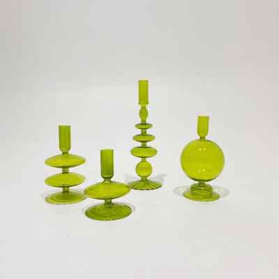 Material: Glass size: S 8x8x12cm. /M 10x10x17cm. /L 12x12x20cm. Color: Green