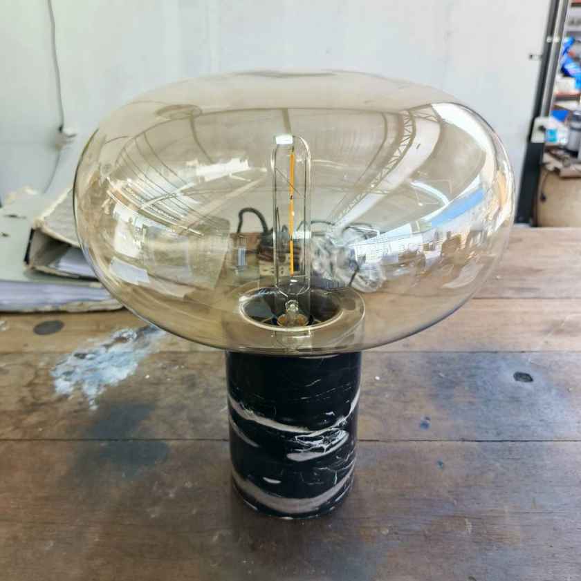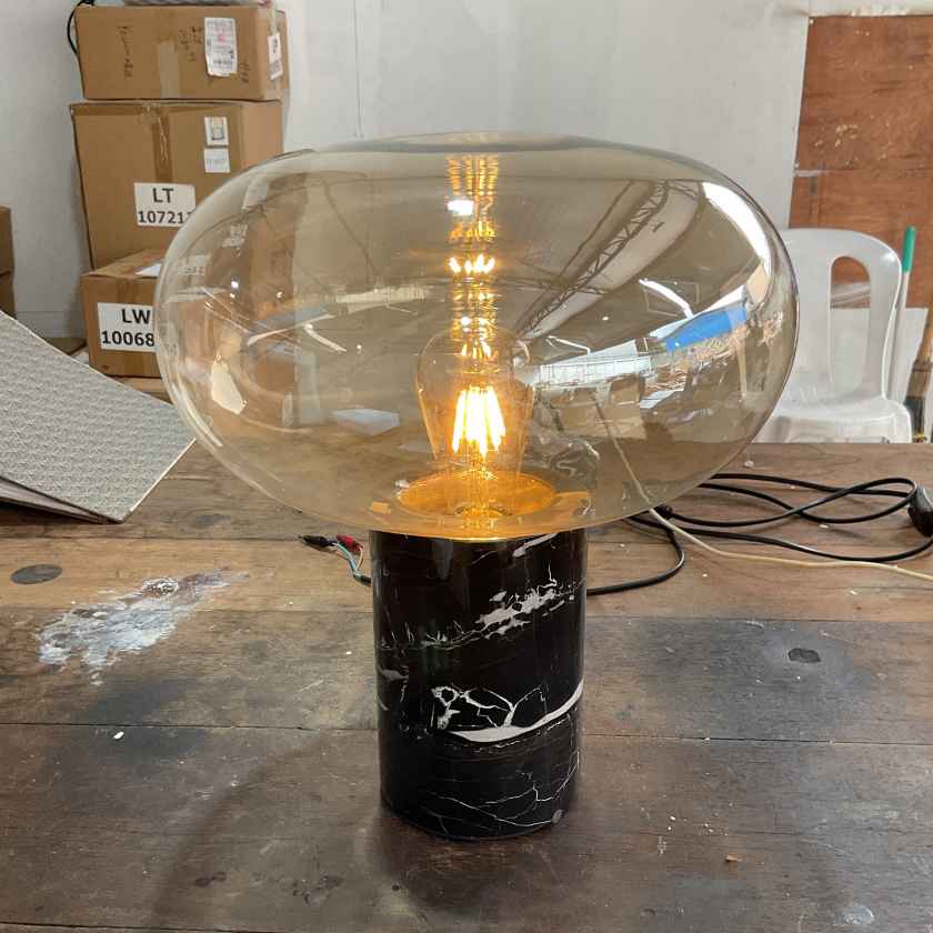 Black Marble Table Lamp-Smoke Glass