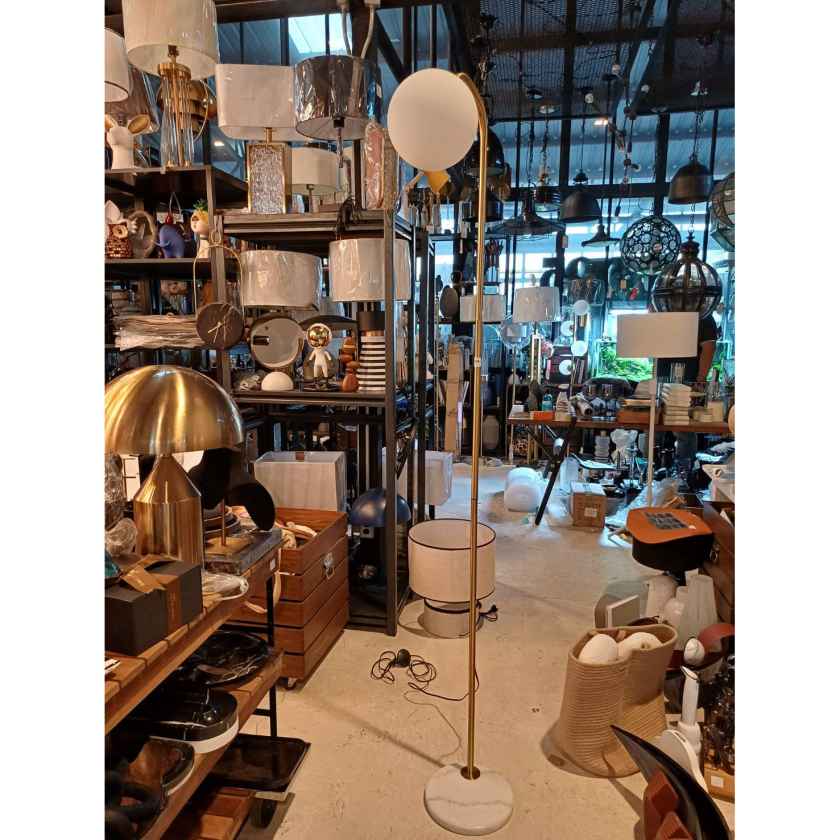 Metal Floor Lamp w/Marble Base -Gold